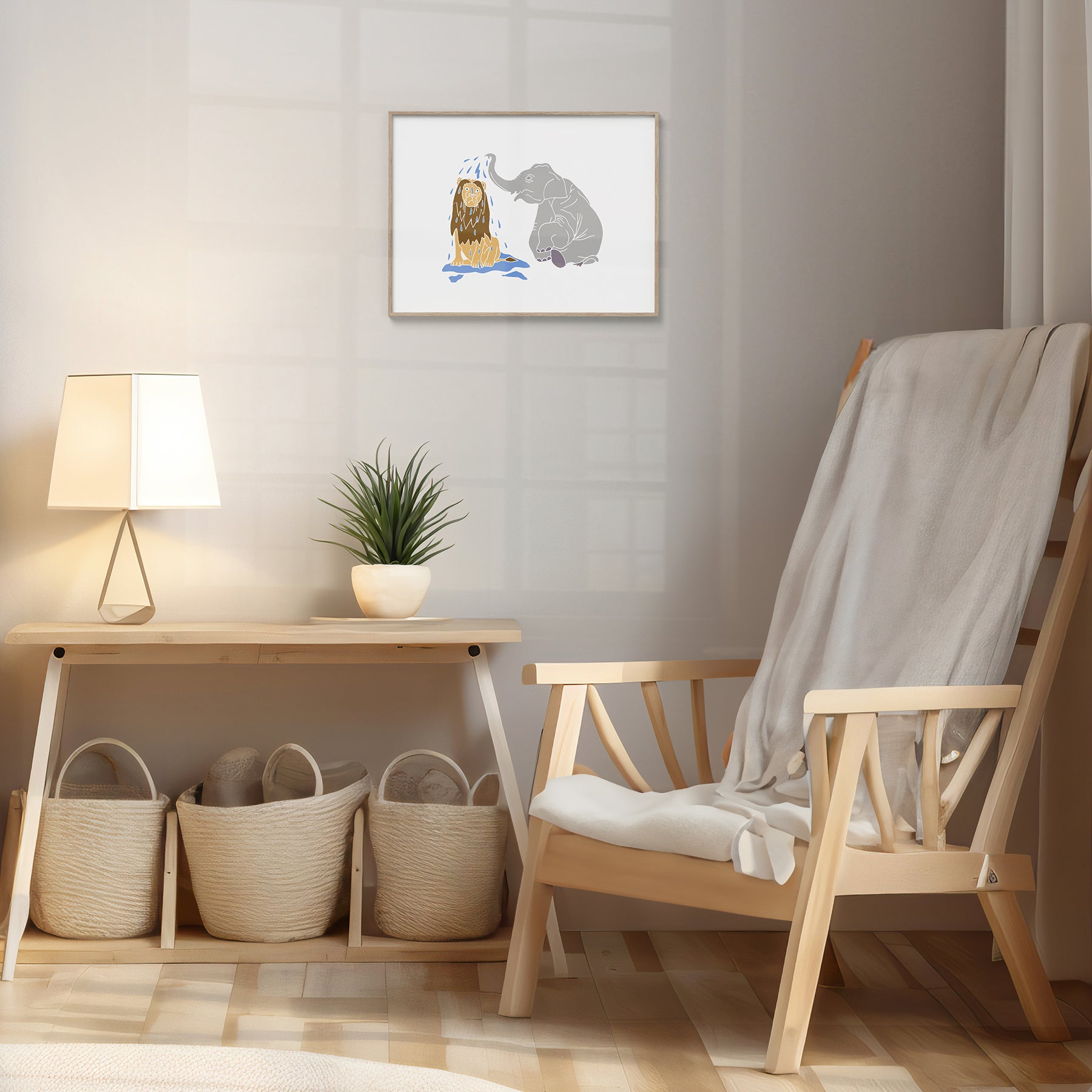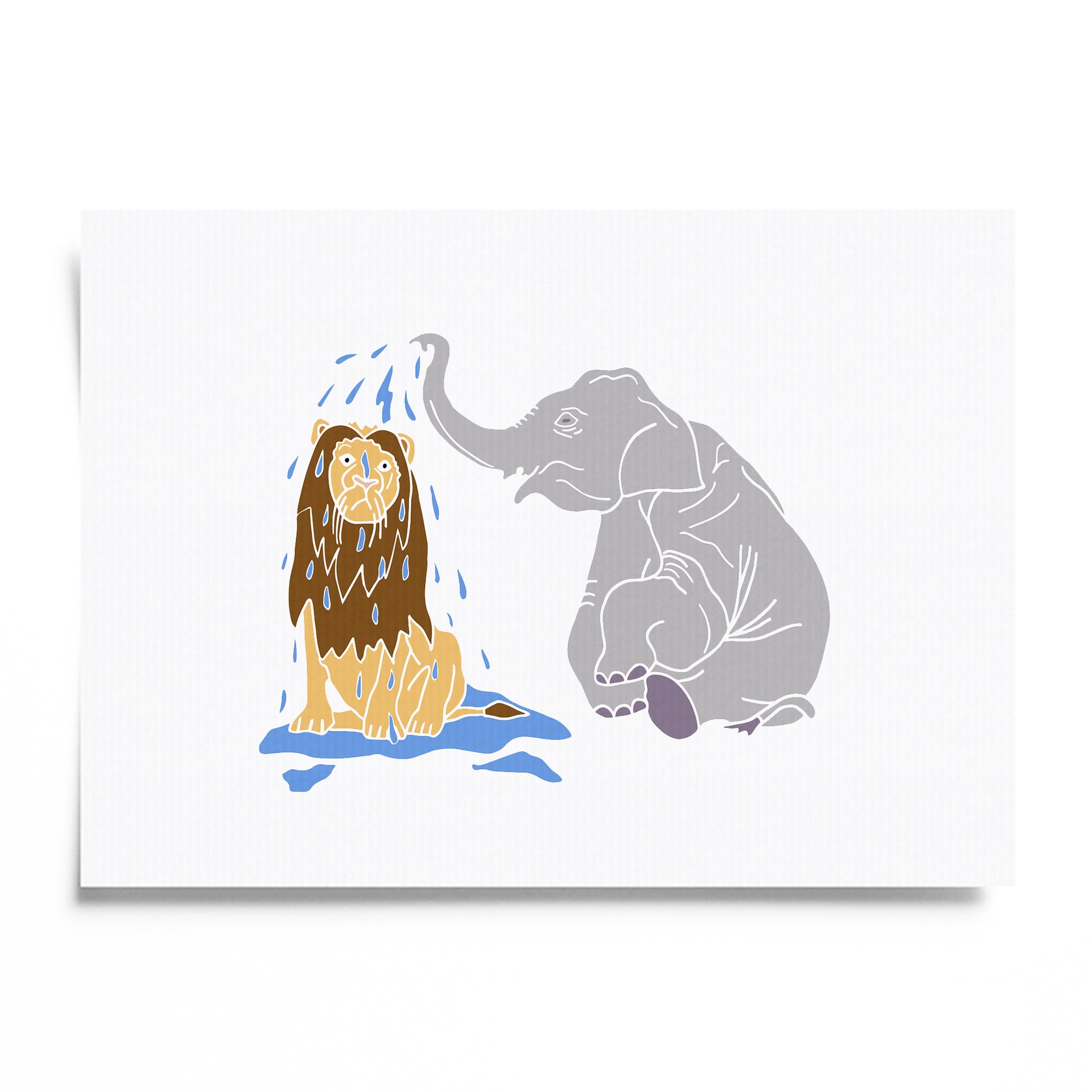Elephant Bathing a Lion - No Ordinary Safari Print