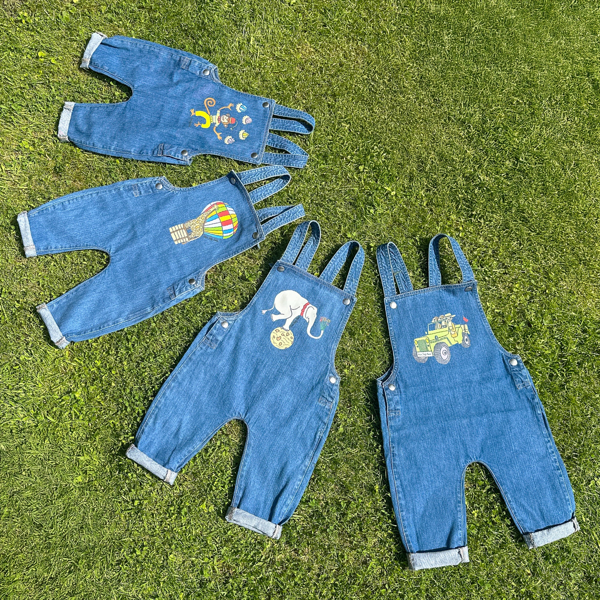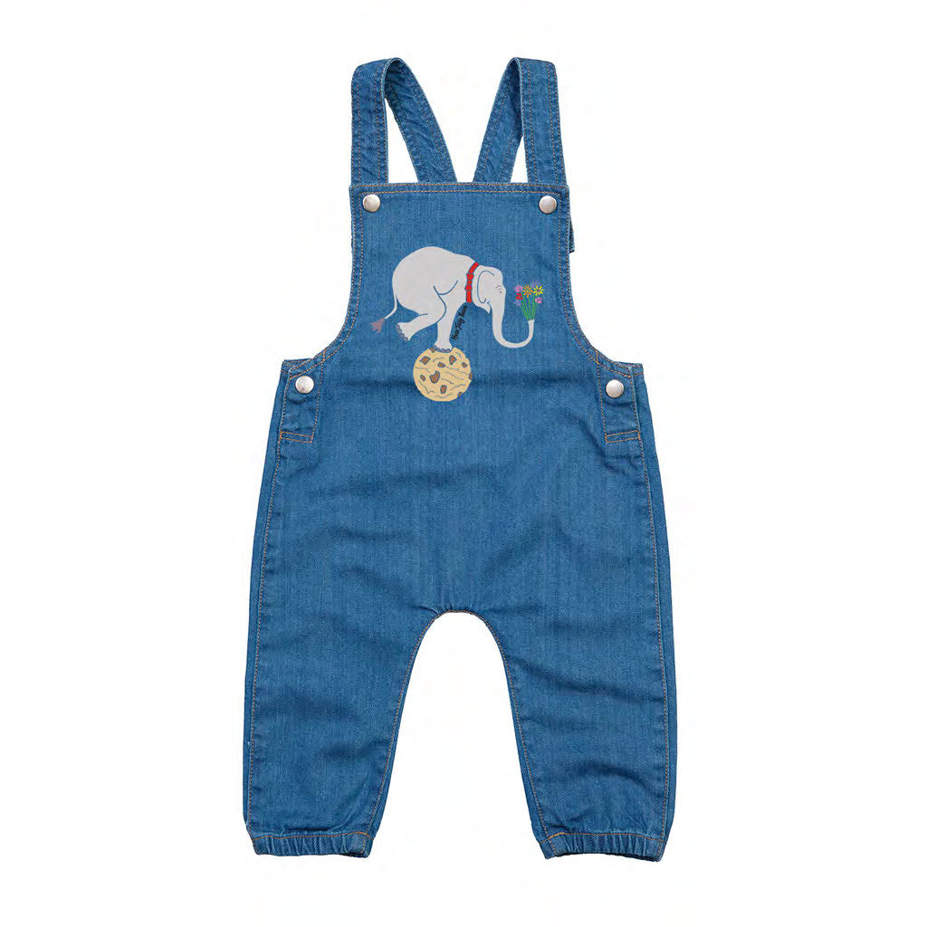 Organic Cotton Kids Denim Dungarees - Balancing Elephant