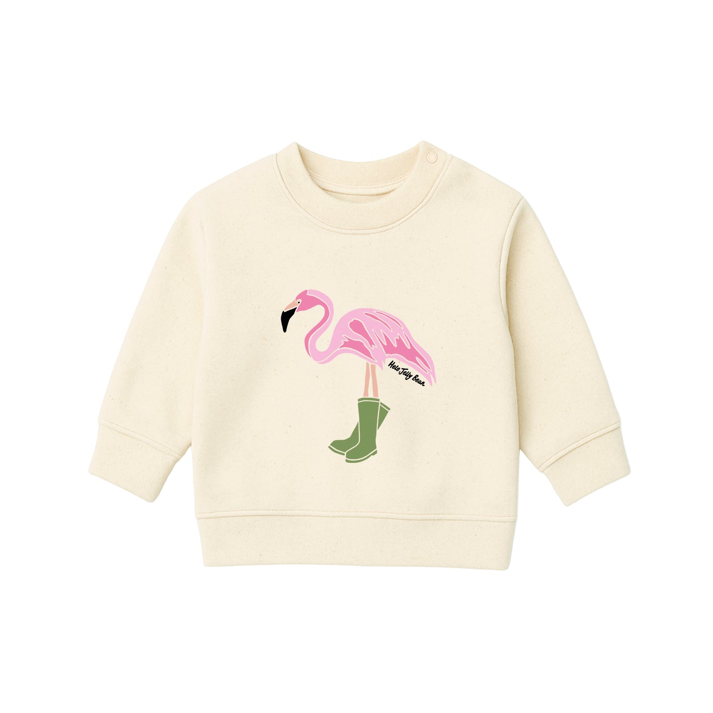 Organic Cotton Kids Sweatshirt - Flamingo in Wellies